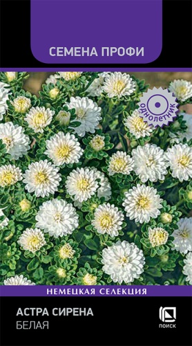 Готовый букет с одного растения! Идеальная клумбовая астра высотой 40-50 см, кусты правильной Y-образной формы. На одном растении формируется 50 и более цветков. Цветы махровые, белой окраски, диаметром 2,5-3 см. Растения устойчивы к заболеваниям и погодным условиям. Цветение с августа до октября.