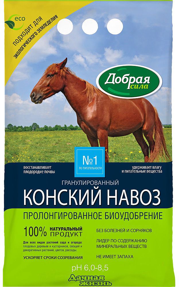 Конский навоз гранулированный Добрая Cила произведен по современным технологиям, которые обеспечивают важные преимущества перед обычным компостом: